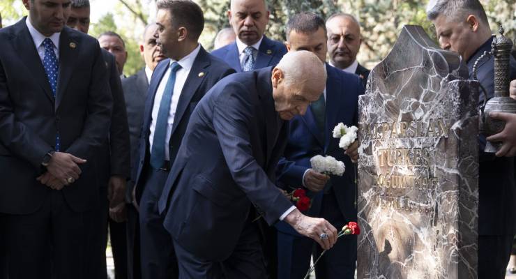 MHP’nin kurucusu Alparslan Türkeş’in mezarını ziyaretinde konuşan Bahçeli, CHP’ye de “Saraçhane’den çıkıp Ankara yolunda Atatürk’ün izinde gitmelerini tavsiye ediyorum” diye seslendi.