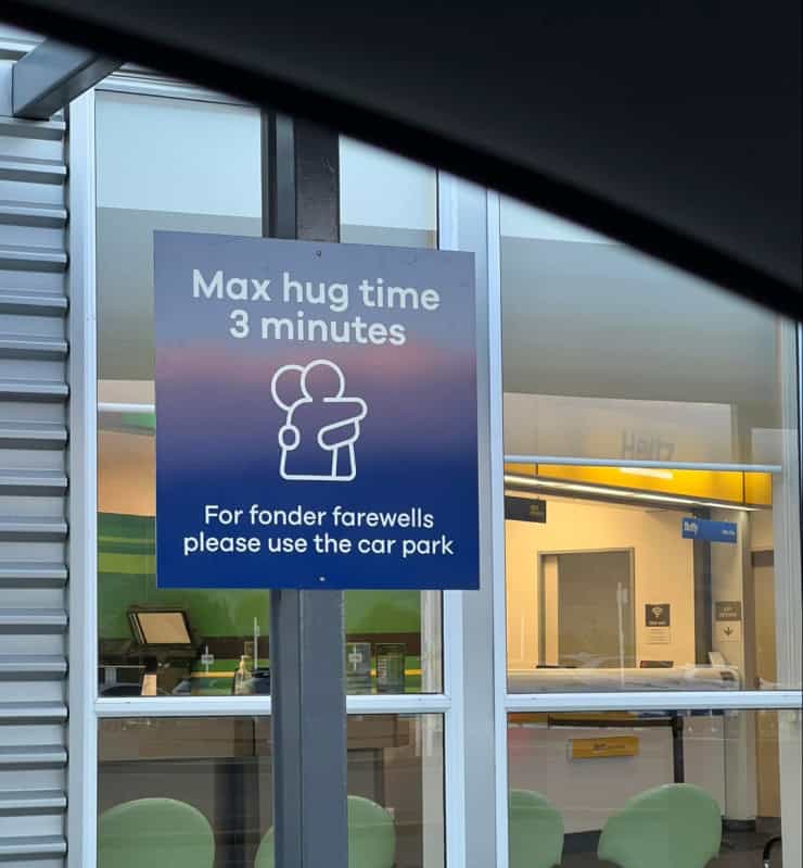 “Maksimum sarılma süresi üç dakikadır. Daha samimi vedalar için lütfen otoparkı kullanın.”