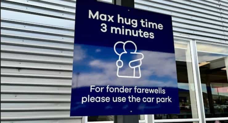 Yeni Zelanda’daki bir havalimanında güvenliği artırmak ve yolcu bırakma bölgesinde trafiğin akışını sağlamak için sarılmalara üç dakikalık sınırlama getirildi.