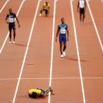 Londra’da düzenlenen Dünya Atletizm Şampiyonası 4×100 metre bayrak yarışında son 100 metreyi koşan Bolt, sakatlanarak yarışı yarıda bıraktı.