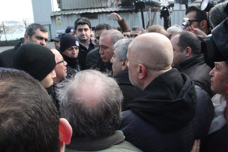 CHP’li heyetin açıklama yapmasına çalışmaların sürdüğü gerekçesiyle izin verilmezken, polis ile heyet arasında kısa süreli arbede yaşandı.