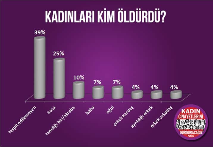 Kadınların yedisi kocası, ikisi babası, ikisi oğlu, dördü yakını, biri erkek arkadaşı ve biri ayrıldığı erkek tarafından öldürüldü.