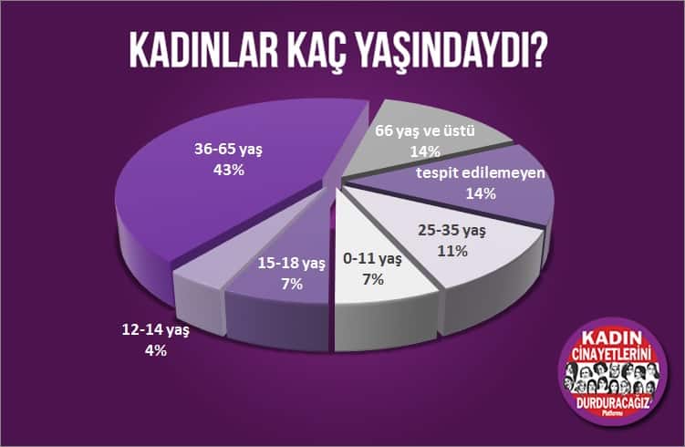 Öldürülen kadınların 12’si 35-65 , üçü 25-34 yaş aralığındaydı.