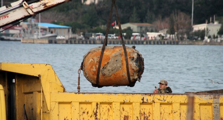 Zonguldak'ta balıkçıların ağına deniz mayını takıldı